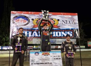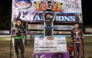 Everson, WA – Jake Andreotti won one of the richest prizes in micro racing on Saturday night, winning $10,000 at the 2018 IBEW NECA Clay Cup Nationals at Deming Speedway in the 600 Open division. Jared Gundersen, Colby Thornhill and Dalton Parreira joined Andreotti as Clay Cup Champions.