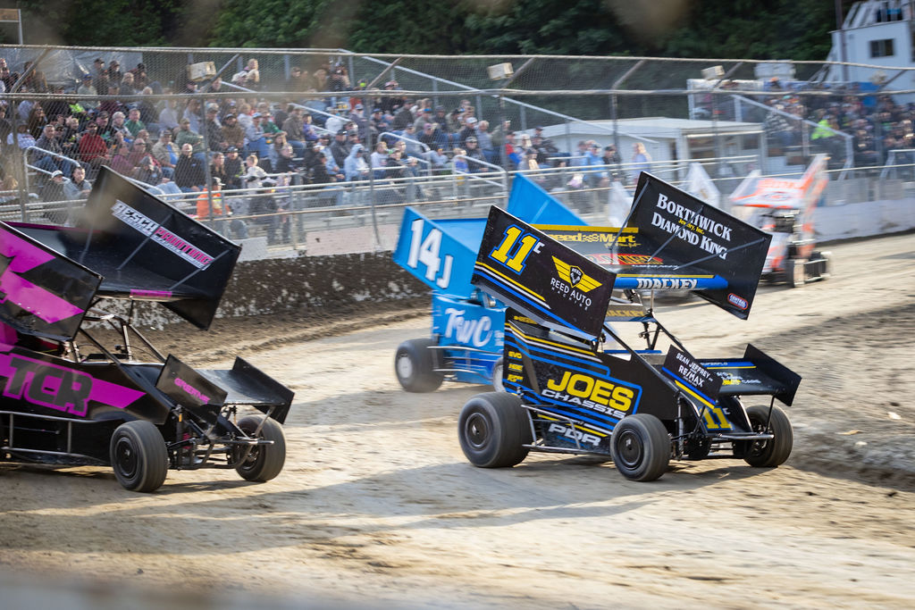Everson, WA – Mother Nature was lurking but Deming Speedway drivers were up to the task as 84 cars rolled through a fast program to finish at 9:25pm, beating the weather by just a few minutes. It was Speedmart & Pacific Power Batteries night at the track and as the night finished off, it was Colin Mackey, Nate Vaughn, Colton Knapp and Lennen Peeters standing tall in victory lane.