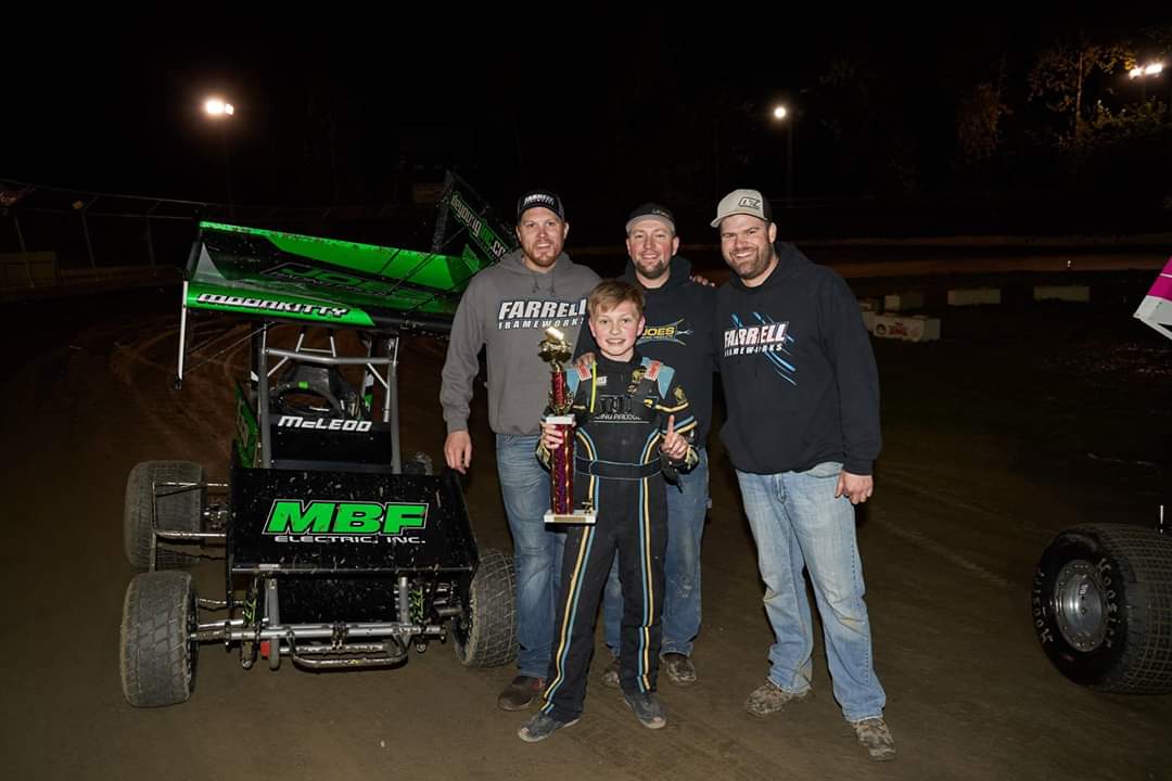 For the second straight week, Levi Kuntz made a late race pass to take the win in the Clean Crawls Junior Sprints. With two laps remaining, Kuntz rolled around Drake Hadlock to take the top spot and eventual win. Peyton Drake and Kane Van Sickle also got around in the exchange and filled out the final two podium spots. Drake and Levi HIllier won the heats.