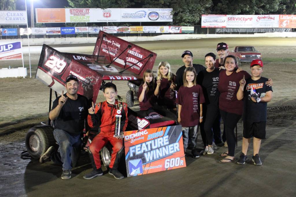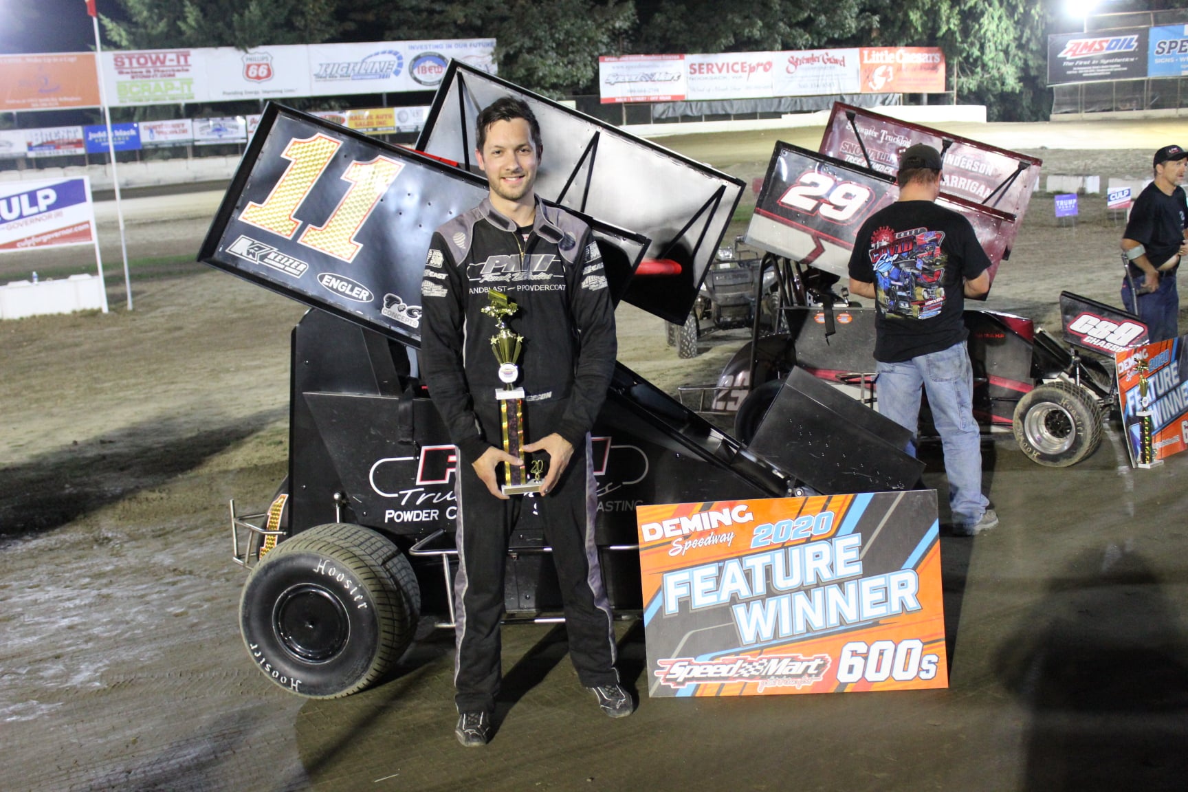 Everson, WA – Mother Nature tried to rob the racers and viewers watching on DirtOvalTv.com of a full race night, but the crew at Deming Speedway had other plans, starting the show early and moving at a blistering pace to finish the show at 8:33 pm despite a light mist that persisted through the heat races. Winners on the night were Evan Margeson, Chance Crum, Nick Evans, Levi Kuntz and Kane Van Sickle.