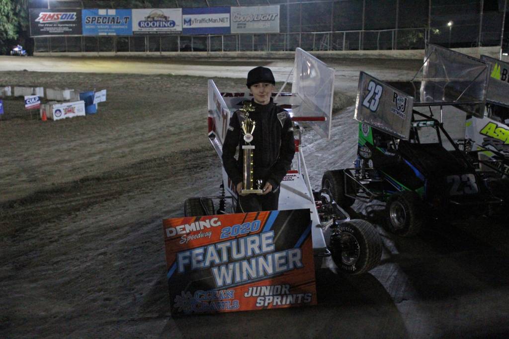 The final appearance of the year for the NW Focus Midgets at Deming Speedway saw Nick Evans roll to the win. Evans used the low groove to pass eventual runner up Levi Harless on lap 11 before grabbing his second victory of the season at the track. Shane Smith picked up third in the feature.