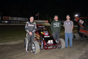 Caution flags shortened the Mytrafficman.NET 600 Restricted main, but didn’t damper the celebration for birthday boy Levi Kuntz, who celebrated turning age 12 with his first victory in the division. Kuntz won ahead of Jayden Whitney and Levi Hillier. Axle Oudman finished fourth and gained six spots to earn hard charger.