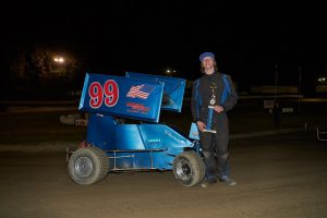 A late race restart proved beneficial for Shane Smith on his way to his first win with the Wicked Energy Gum Focus Midget Series. The focus midgets do Delaware style restarts with the leader by himself and rows doubled up behind him. Race leader Matt Loving swung wide on the restart at the exit of corner four and did not get good forward drive, allowing Smith to power through the middle and take the lead by the first turn. Loving would battle with Nick Evans for third, allowing Smith to run away to his first victory in the series by a comfortable margin. Loving would take second and Evans third. Chance Crum and Ross Rankine won the heats.