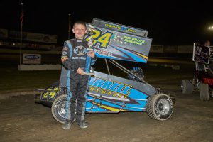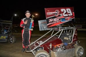 Four races into 2019 and it’s been the Levi and Levi show in the Clean Crawls Junior Sprints. For the second straight week, Levi Hillier was the winner, leading from lap 2 all the way through 20 in front of Levi Kuntz in taking the victory. Kuntz and Hiller are the only two feature winners thus far on the season. Taking third on the night was Peyton Drake. Heat winners were Kane Van Sickle and Hillier.