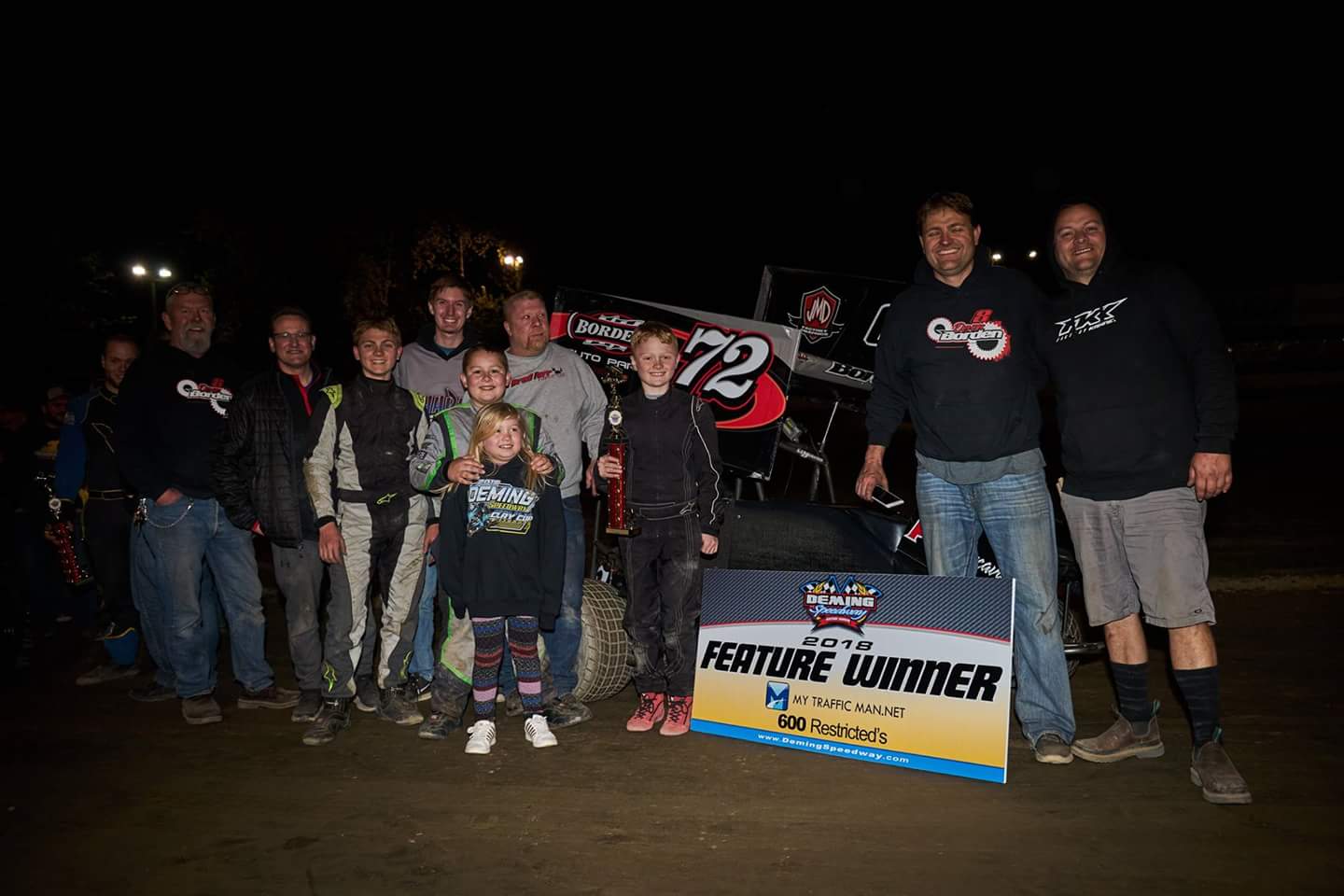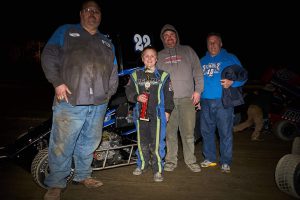 Carson Borden collected his first Deming Speedway win in the Mytrafficman.NET600 Restricted division in dramatic fashion. In a caution shortened race that featured many restarts, Borden was hounded all race long by Dakota Drake, actually losing the lead to her on the second to last restart of the race only to see a yellow fly before the lap was complete. On the final restart, Drake’s car inexplicably did not come to speed, costing her a number of spots and sealing the deal for Borden. Levi Klatt ran second with Sean Cochran taking third. Lane Taylor was the fast qualifier with heat wins going to Colin Mackey, Klatt, Cochran and Macie Logsdon.