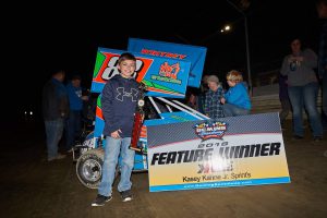 In the Kasey Kahne Junior Sprints, Jayden Whitney survived multiple cautions to win his first feature of 2018. Dustin Ramsey led after the first two starts, but the race went yellow on both occasions. On the third try, Whitney streaked out to a lead that would never be eclipsed as he rolled to victory, followed by Peyton Drake and Austin Held. Whitney was fast time with heat wins going to Kane Van Sickle, Keira Zylstra and Held.