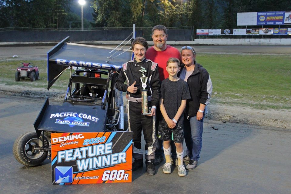 Everson, WA – On Deming Speedway’s third race night of the year, Jesse Schlotfeldt raced to the win in the Speedmart 600 Open division, capping a lightning fast night of racing on the track and off, as Mother Nature had wet weather impending.